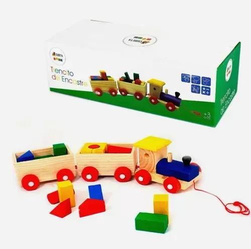 Arriba de los vagones tiene bloques geométricos (pequeños)