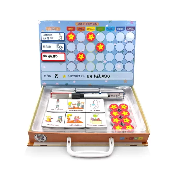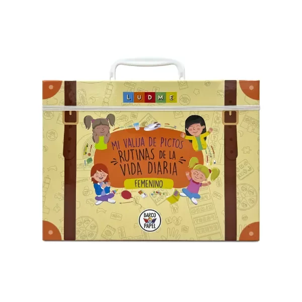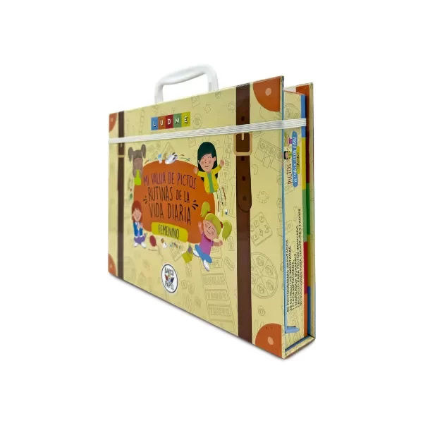 • Contenido: valija con pictogramas ilustrados que representan actividades diarias (levantarse, desayunar, jugar, bañarse, dormir, etc.).