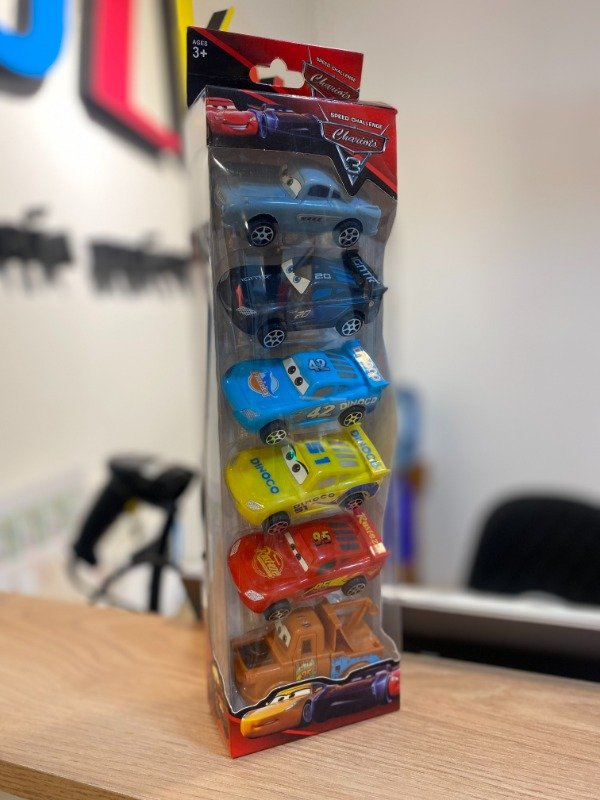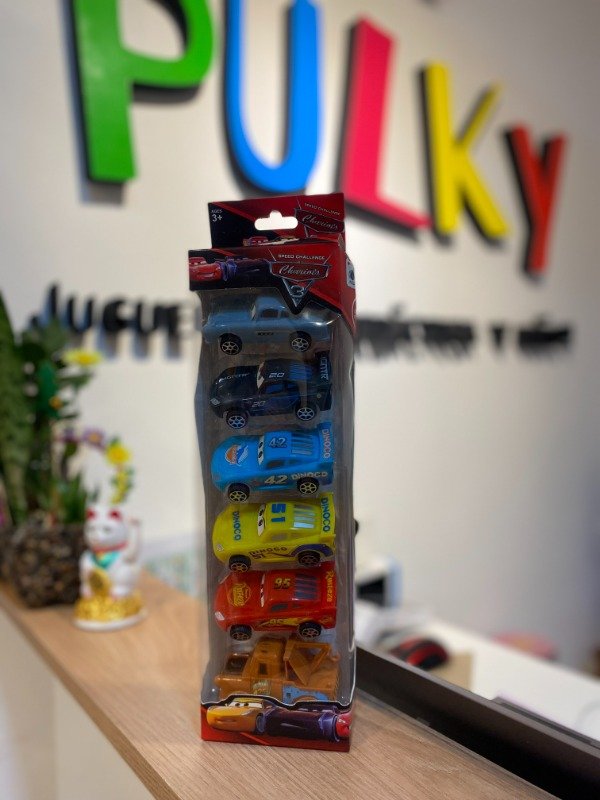 Set de 6 autitos de Cars, con diferentes personajes y colores llamativos. Son autitos livianos y faciles de manipular, ideales para manos pequeñas y para llevar a todos lados.