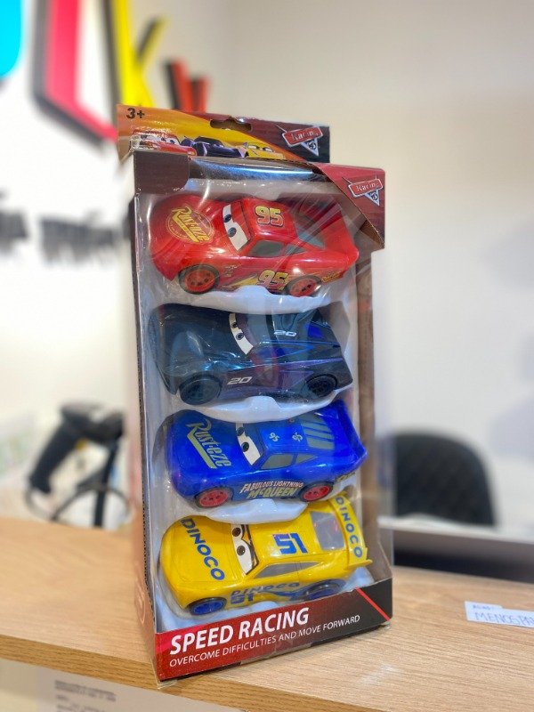 Set de 4 autos de carreras estilo Cars, super llamativos y resistentes.
