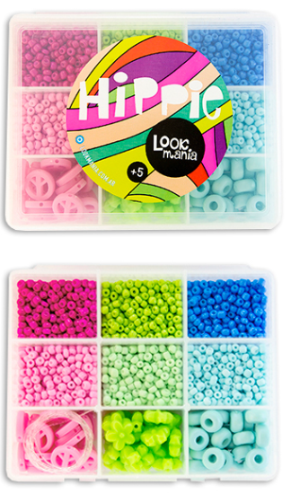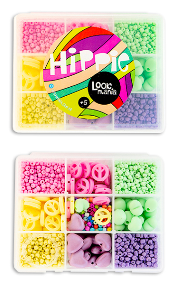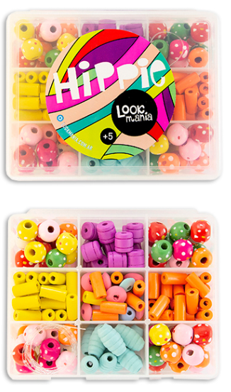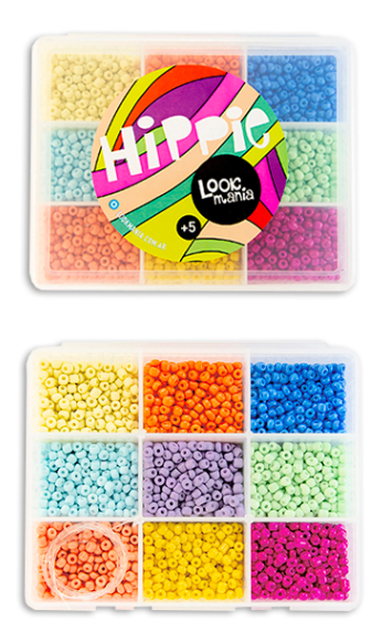 Medida: 10x13x4.5 cm. Viene con mostacillas de vidrio, plástico con formitas, madera de colores y tanza, para armar tus propias joyas!