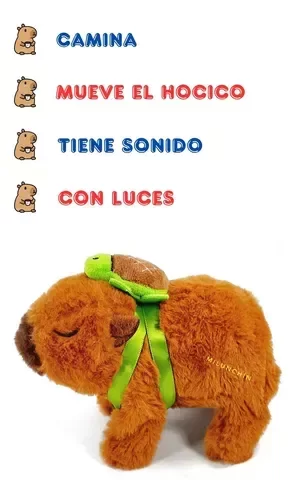 Este peluche no solo es un objeto de cariño, sino que también cuenta con funciones interactivas que lo hacen único. Al encenderlo, el capibara camina dando pequeños saltos, mueve la cabeza y emite un sonido encantador, estimulando la imaginación y el juego activo. Ideal para niños a partir de los 3 años años, este peluche se convierte en un amigo inseparable que acompaña en cada aventura.