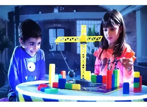 Este juego de mesa combina estrategia, destreza y acción en una experiencia única. Ideal para niños y niñas a partir de los 6 años, permite jugar en familia o con amigos mientras derribás estructuras con una grúa y bola demoledora.