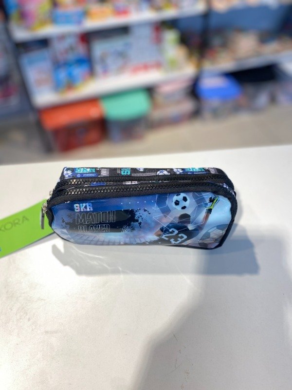 La cartuchera Skora es ideal para amantes del deporte, con un diseño frontal de fútbol . Cuenta con doble cierre que permite una organización eficiente de los útiles escolares. Fabricada con un material duradero, es el accesorio perfecto para cualquier estudiante.